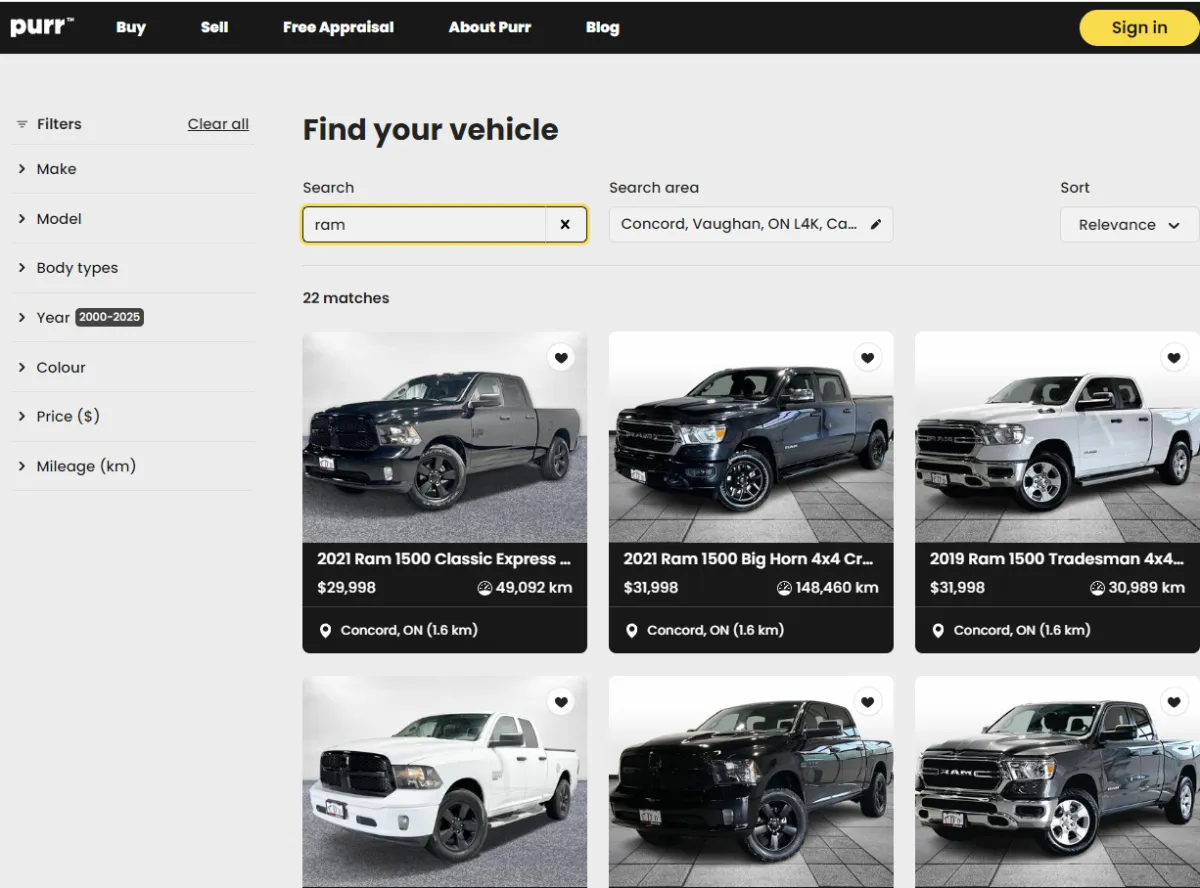 Create you purr.ca dealer account and get your inventory syndicated by a PURR represantive